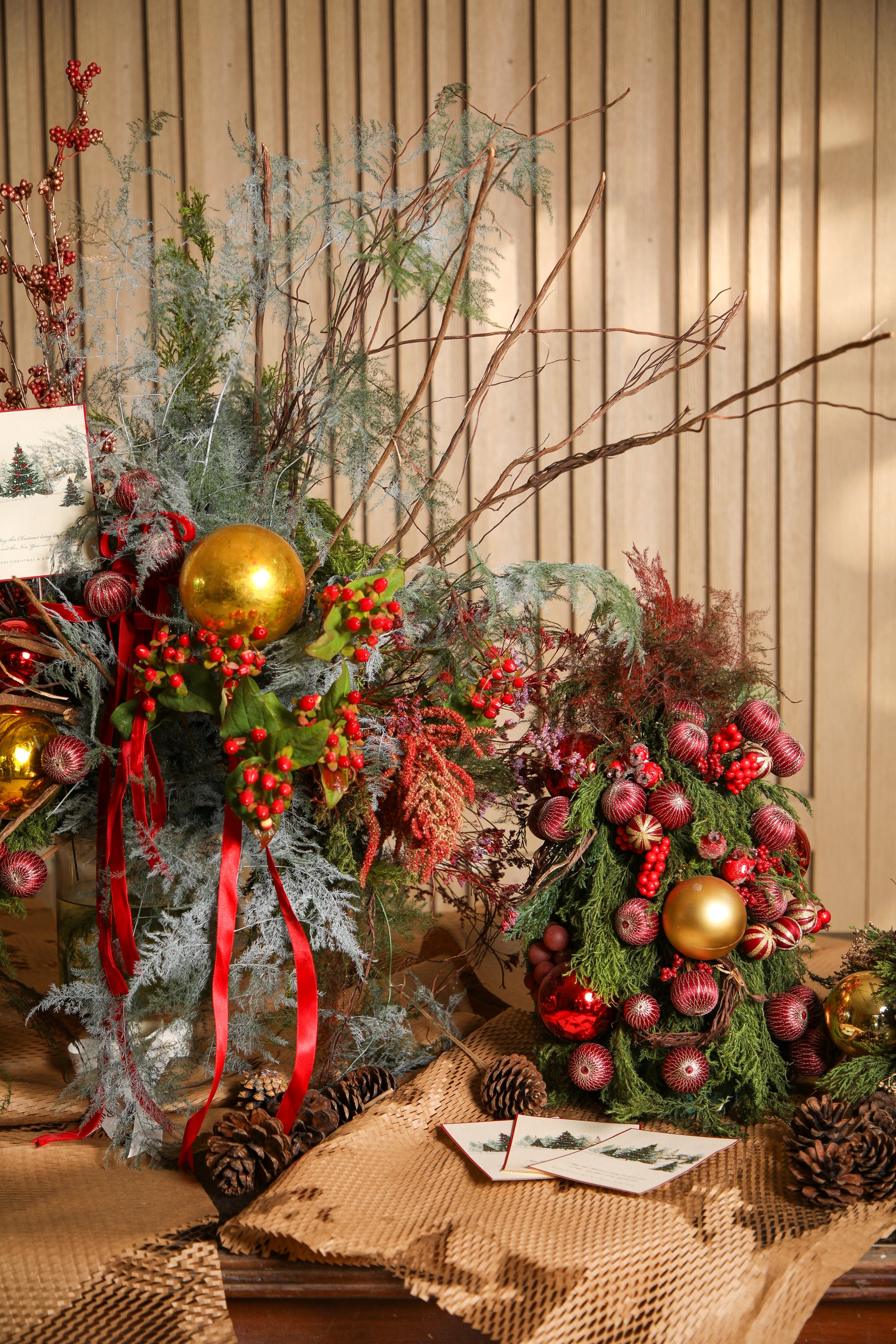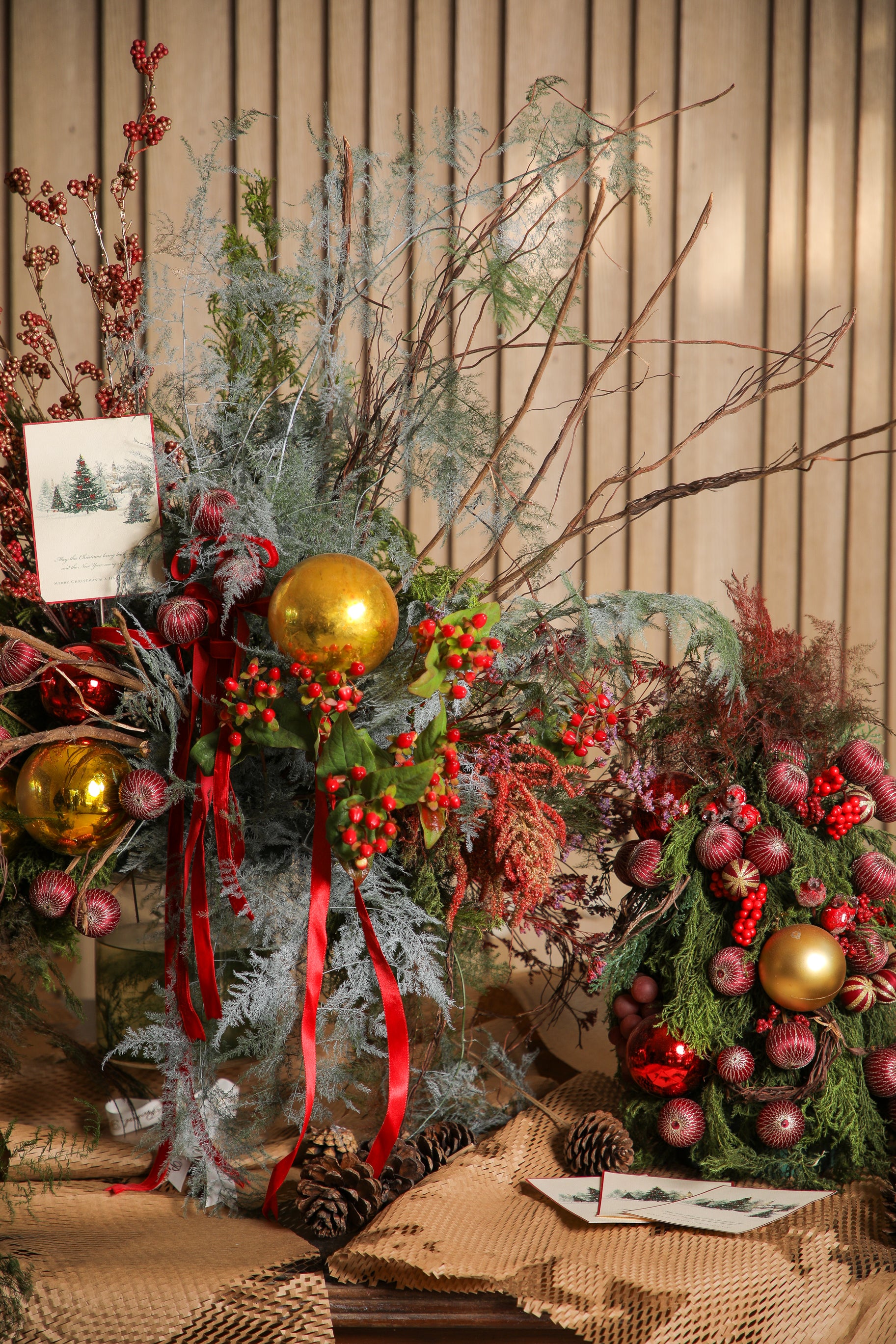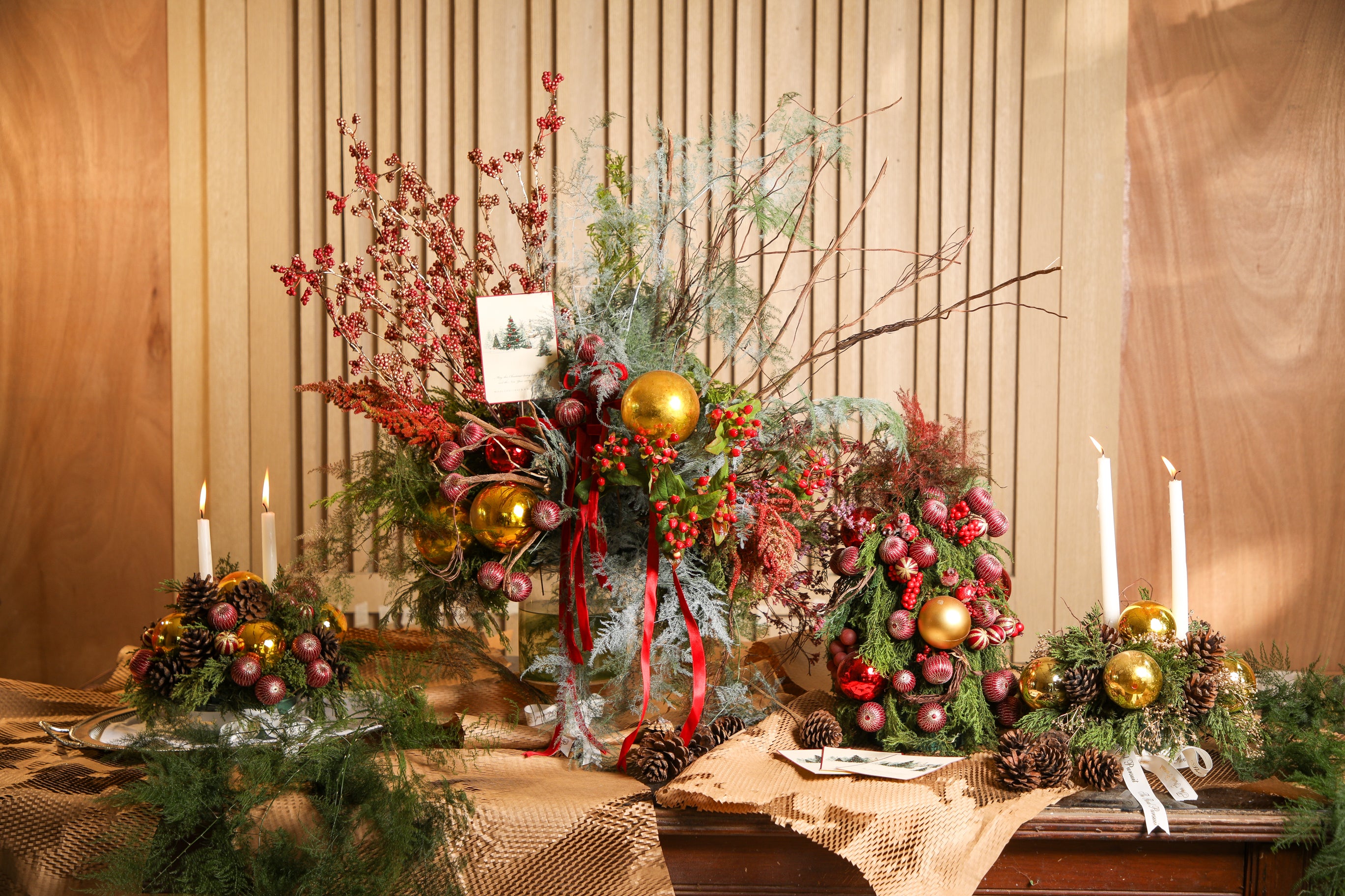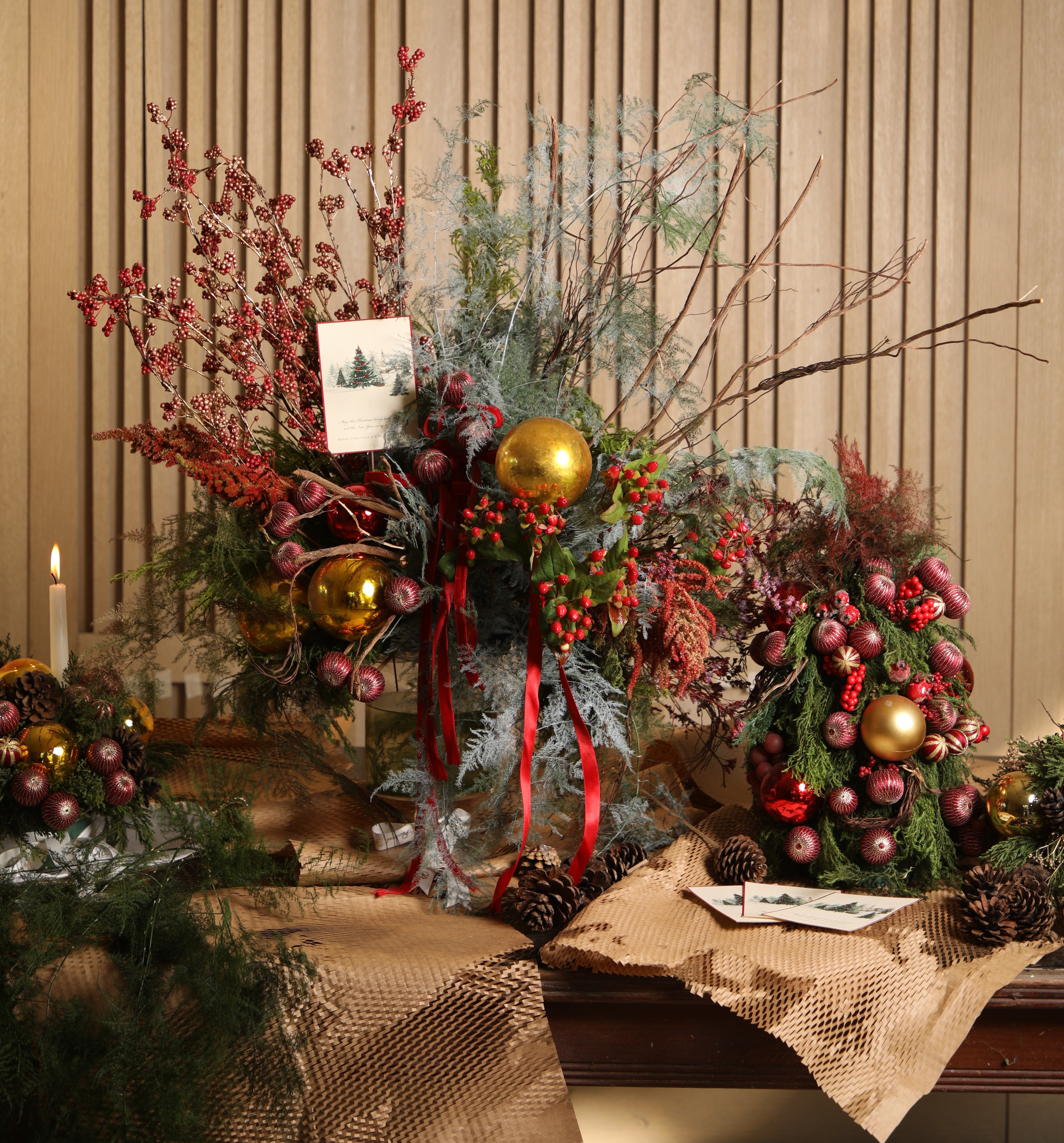 Includes 1 Big Flower Arrangements, 2 Small Sized Flower Arrangement & 1 Small Sized Christmas Tree