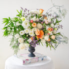 Console Arrangement : A console arrangement is three sided arrangement and has green foliage at the back. It is ideal to be displayed on a console table or a coffee table against a wall.