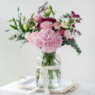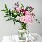 Flowers: Hydrangea, Pink Roses, Pink Eustoma, Mixed daisy, Limonium, Mixed Leaves