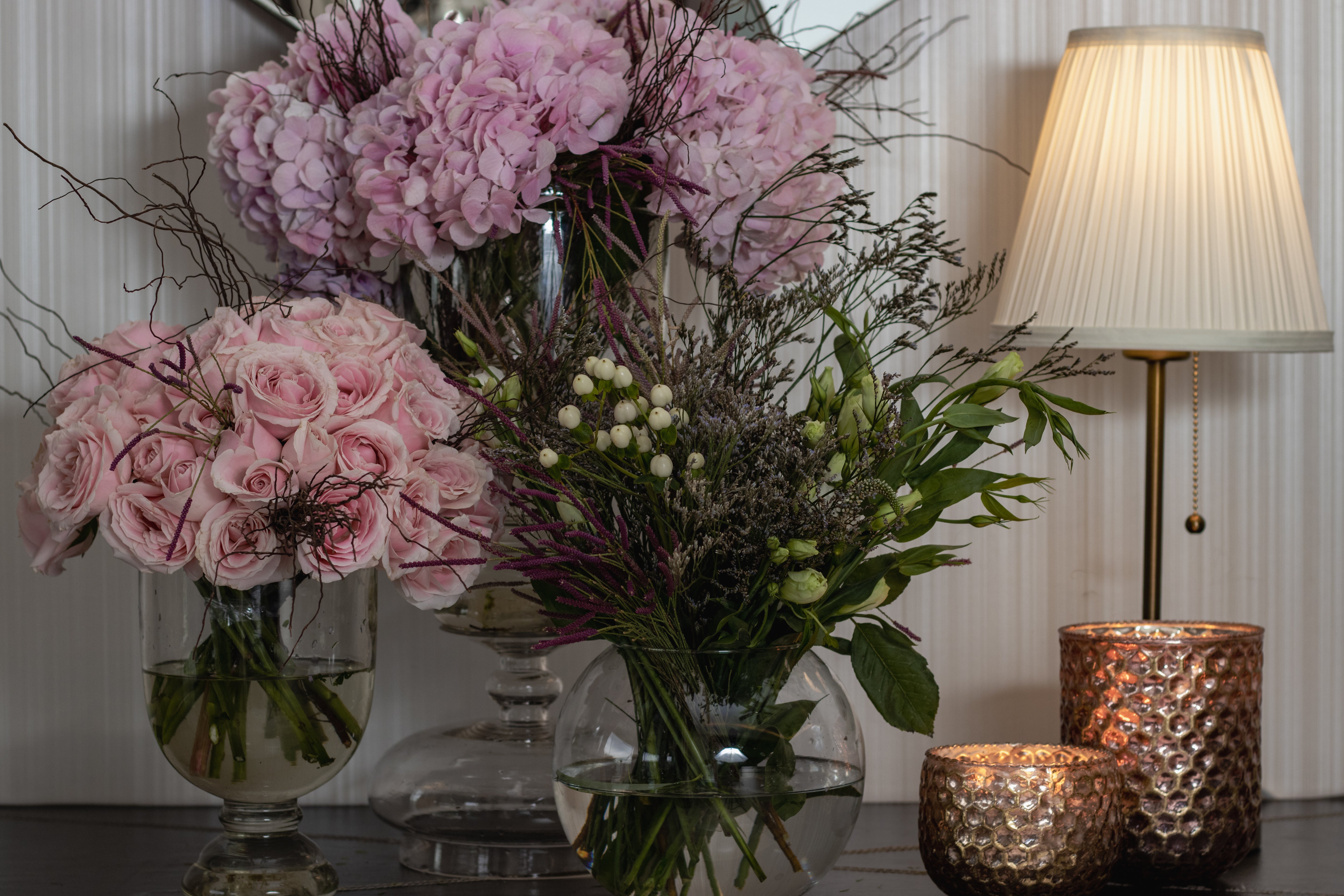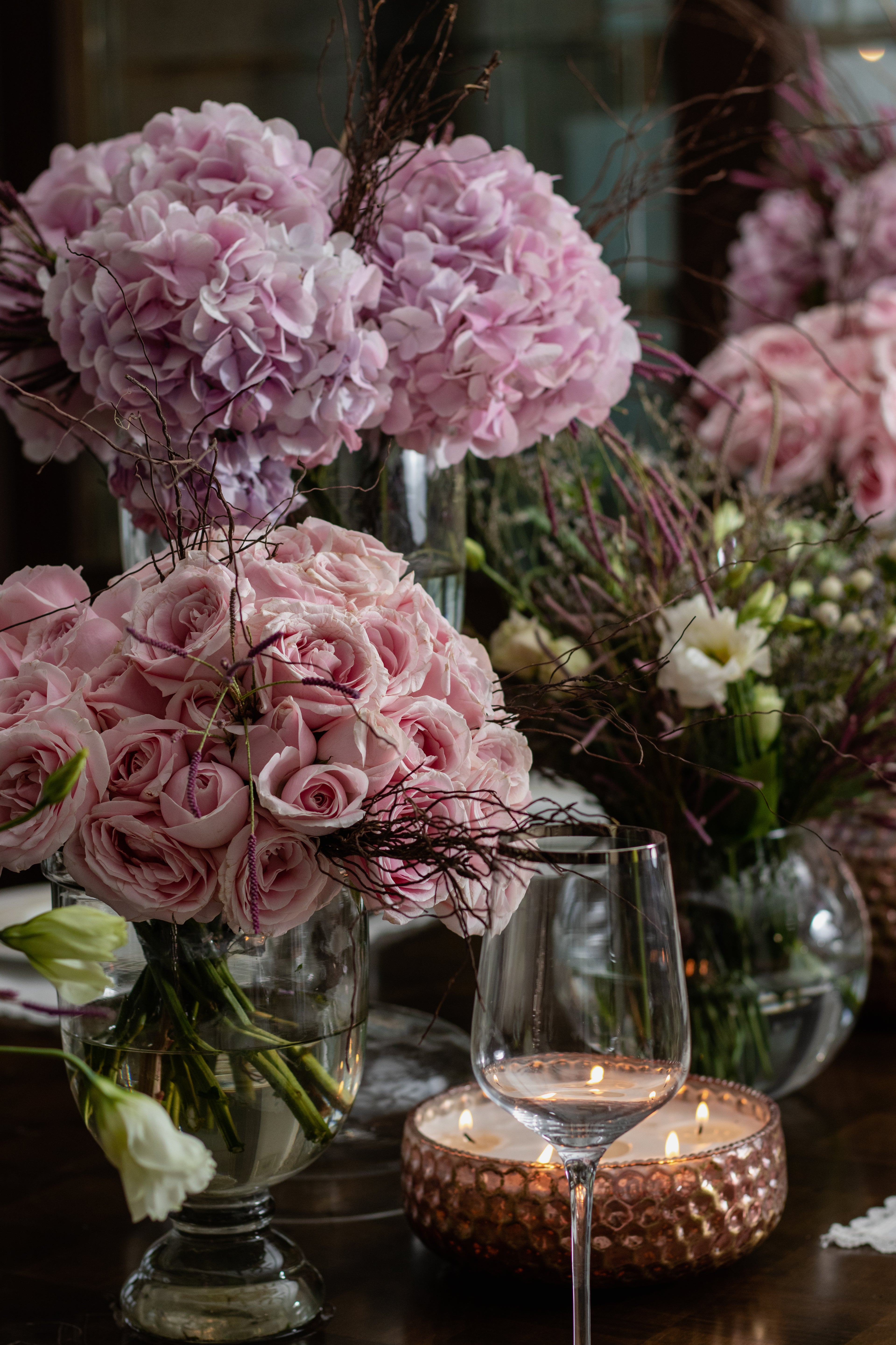 Flowers: Pink Hydrangea, Blue Hydrangea & Fillers