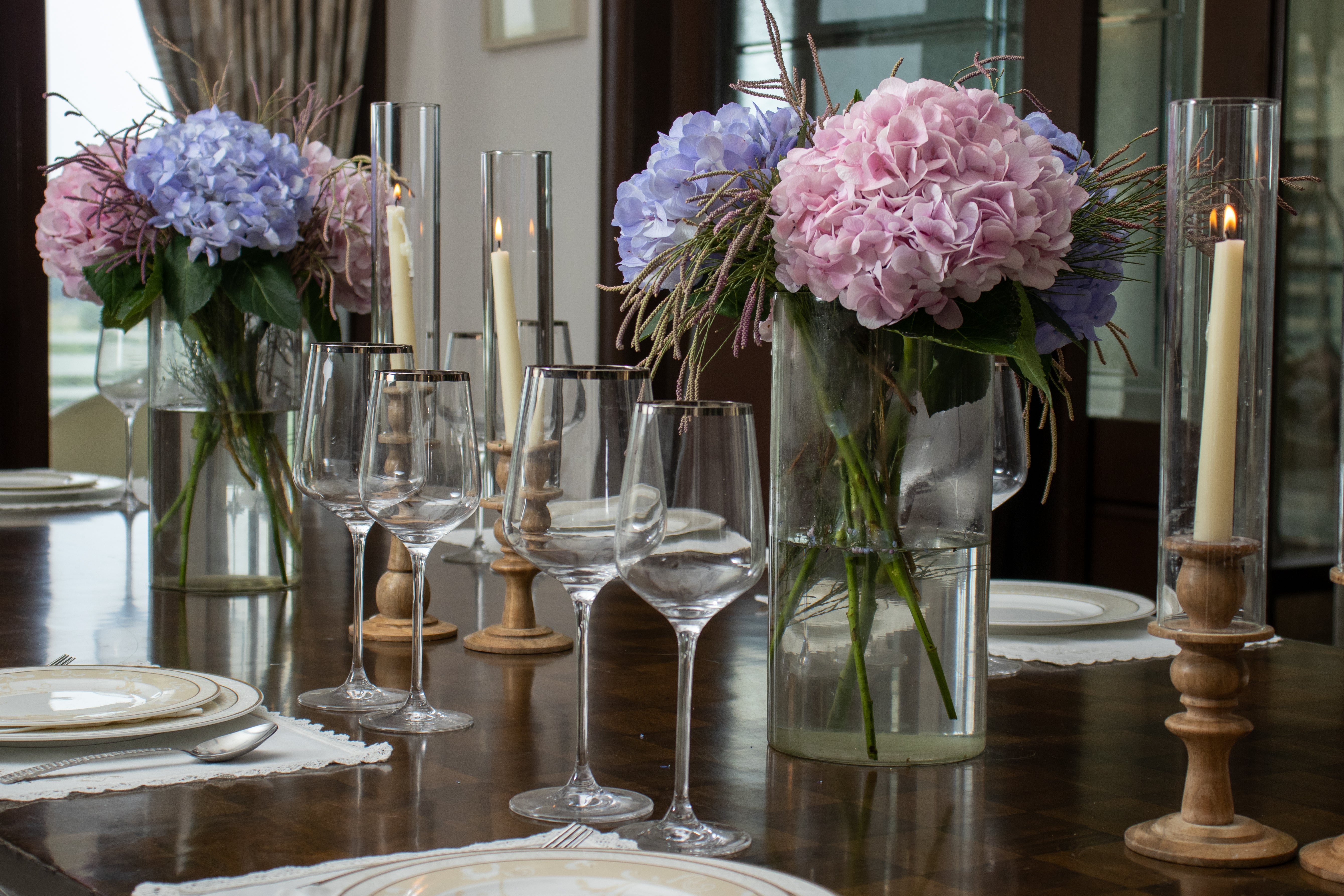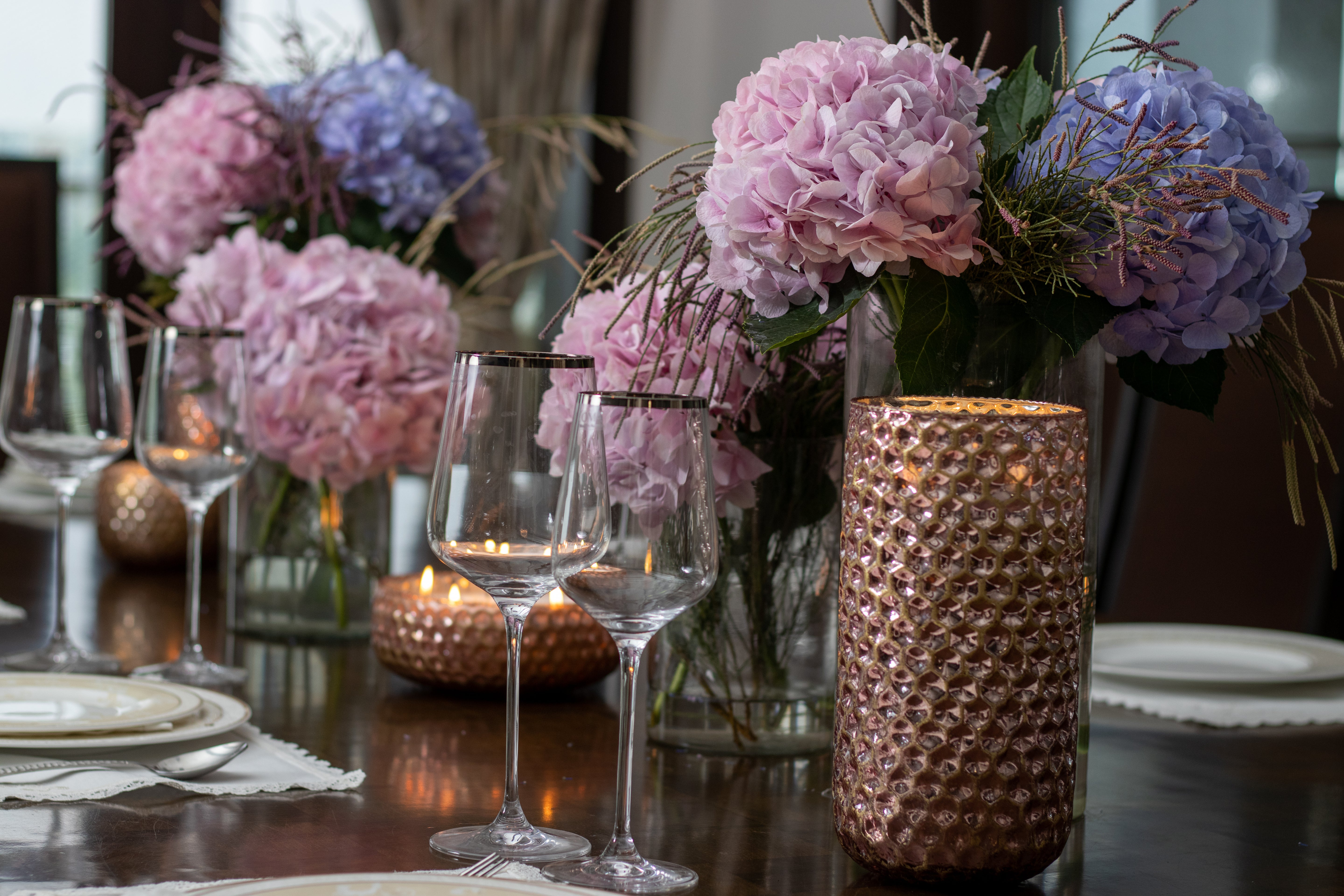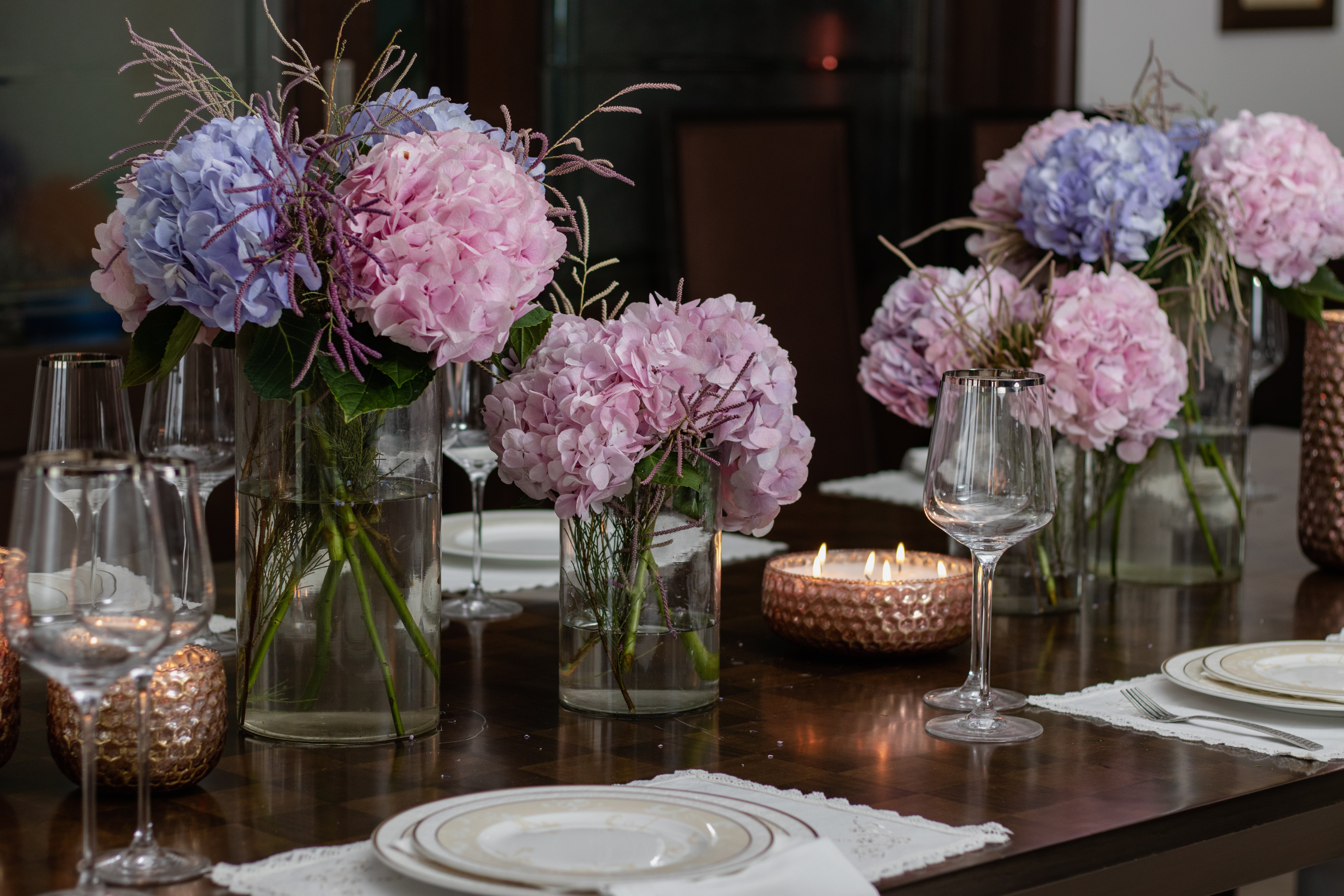 Flowers: Pink Hydrangea, Blue Hydrangea & Fillers