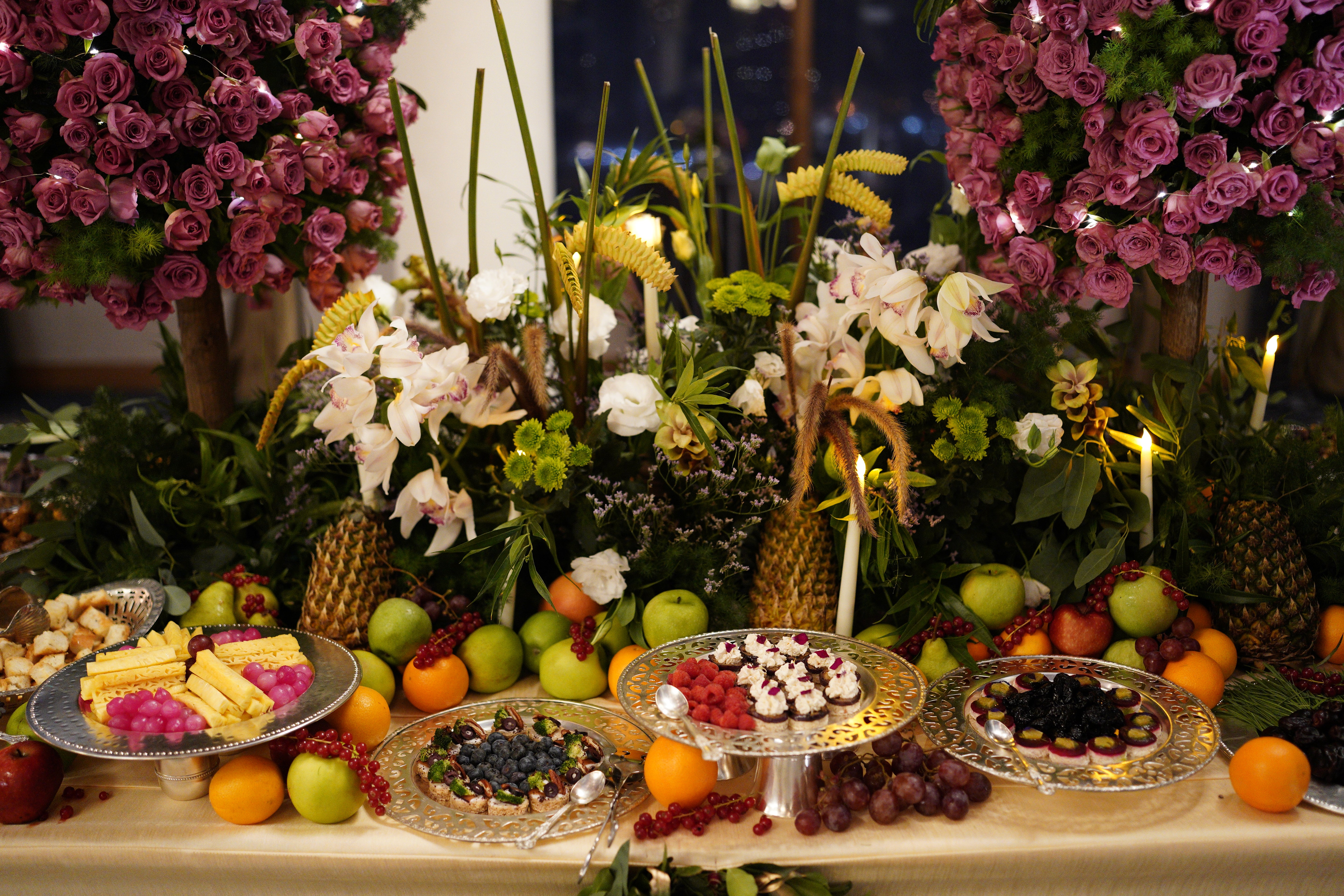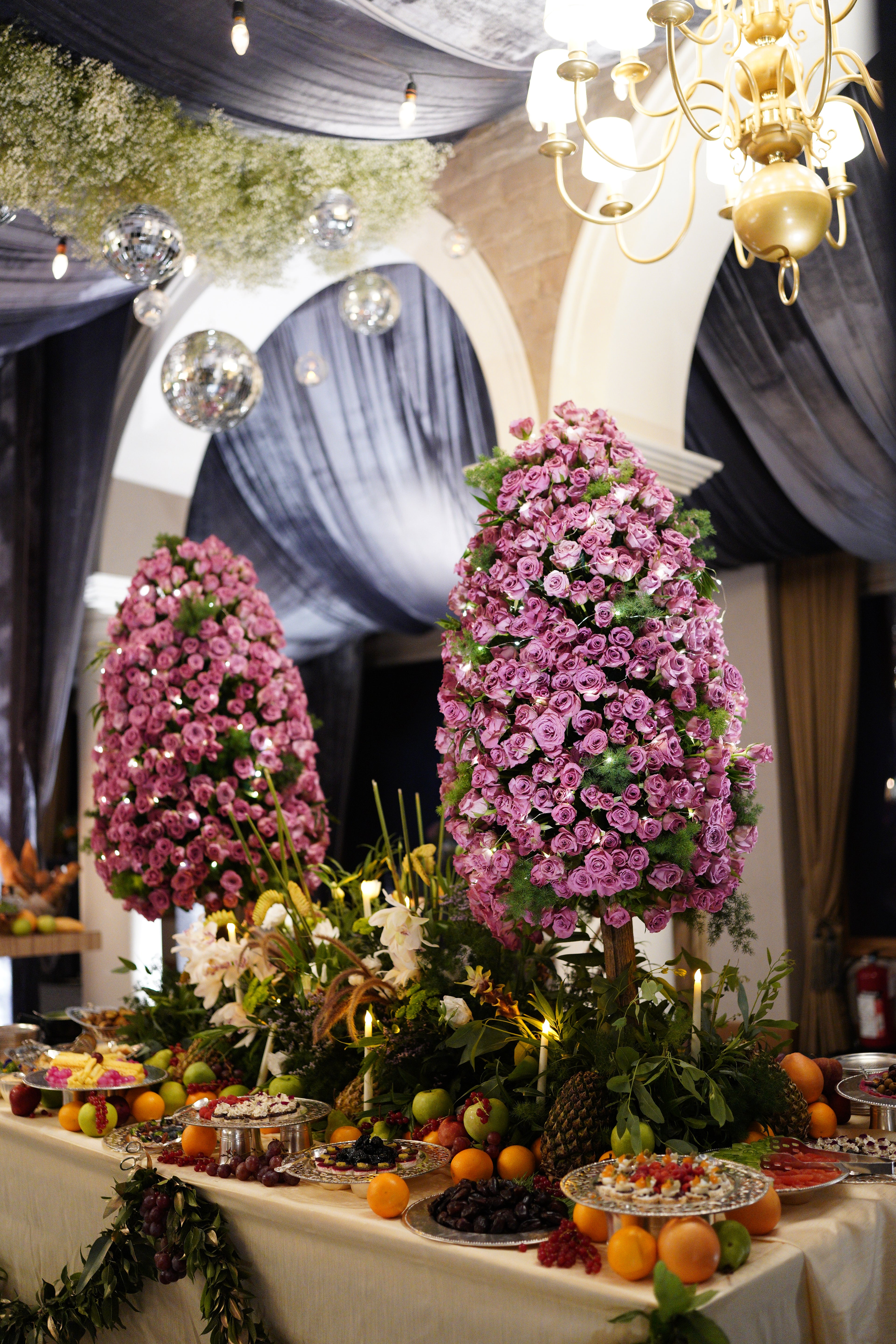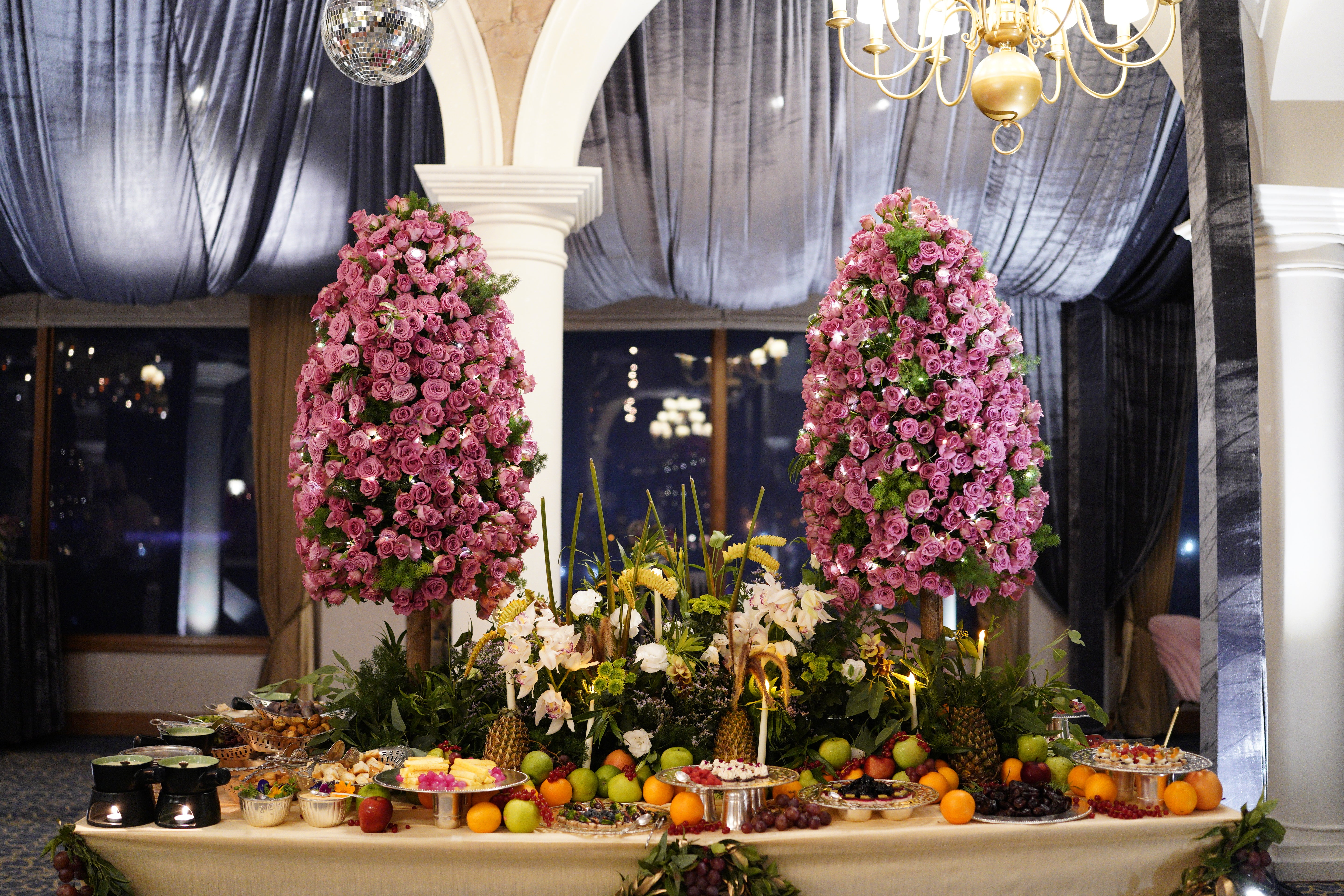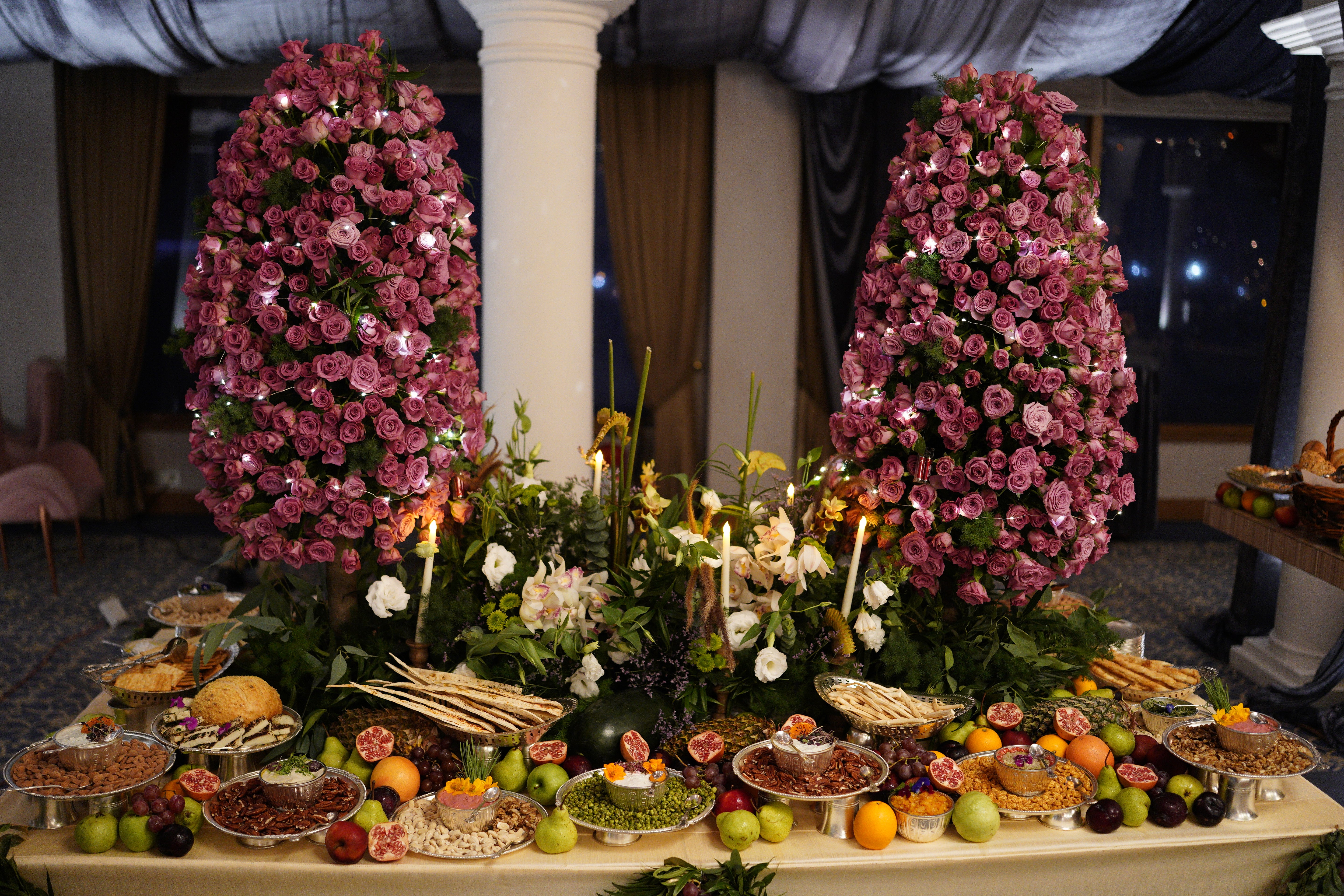 Includes 2 Tall Roses Trees & 1 Tablescape Runner