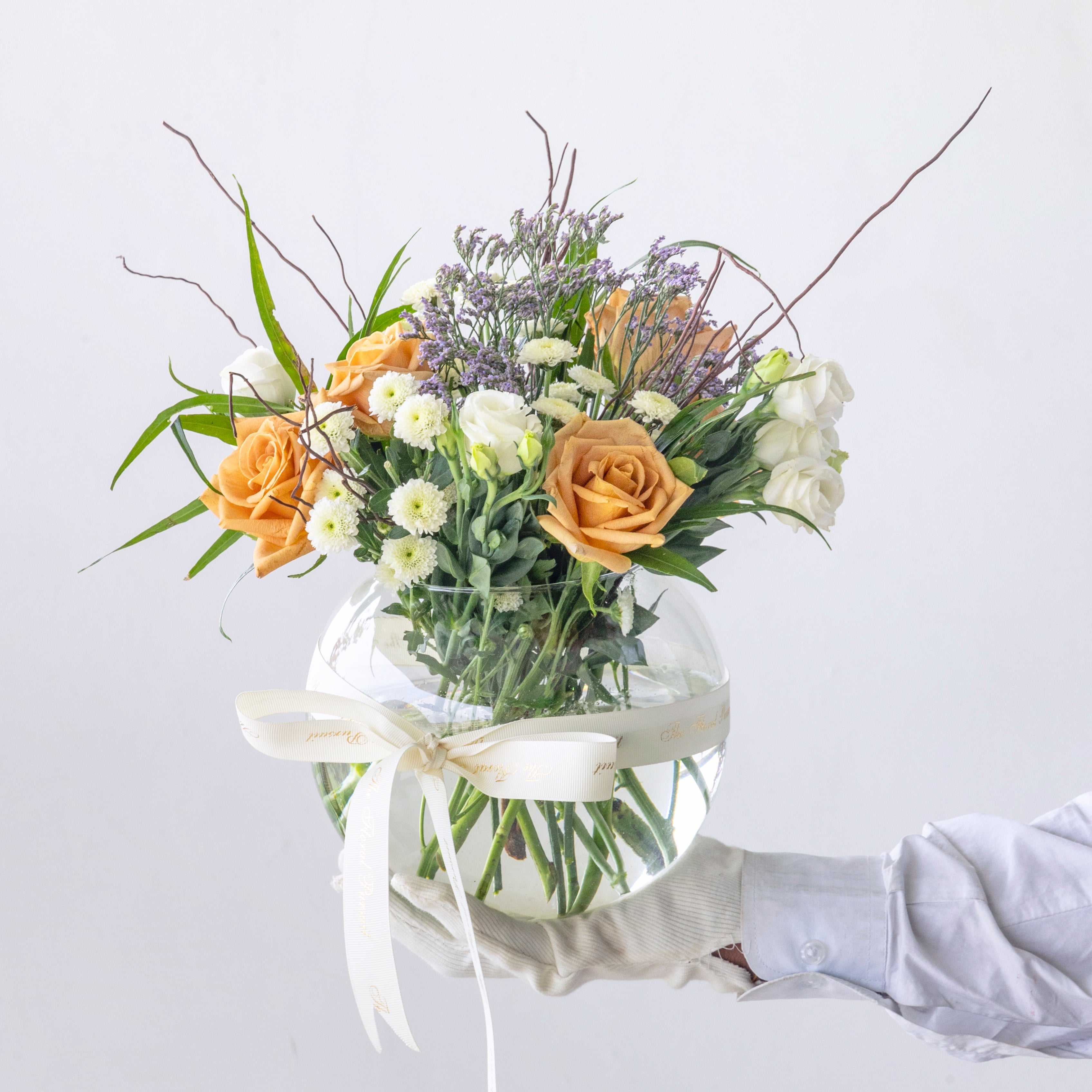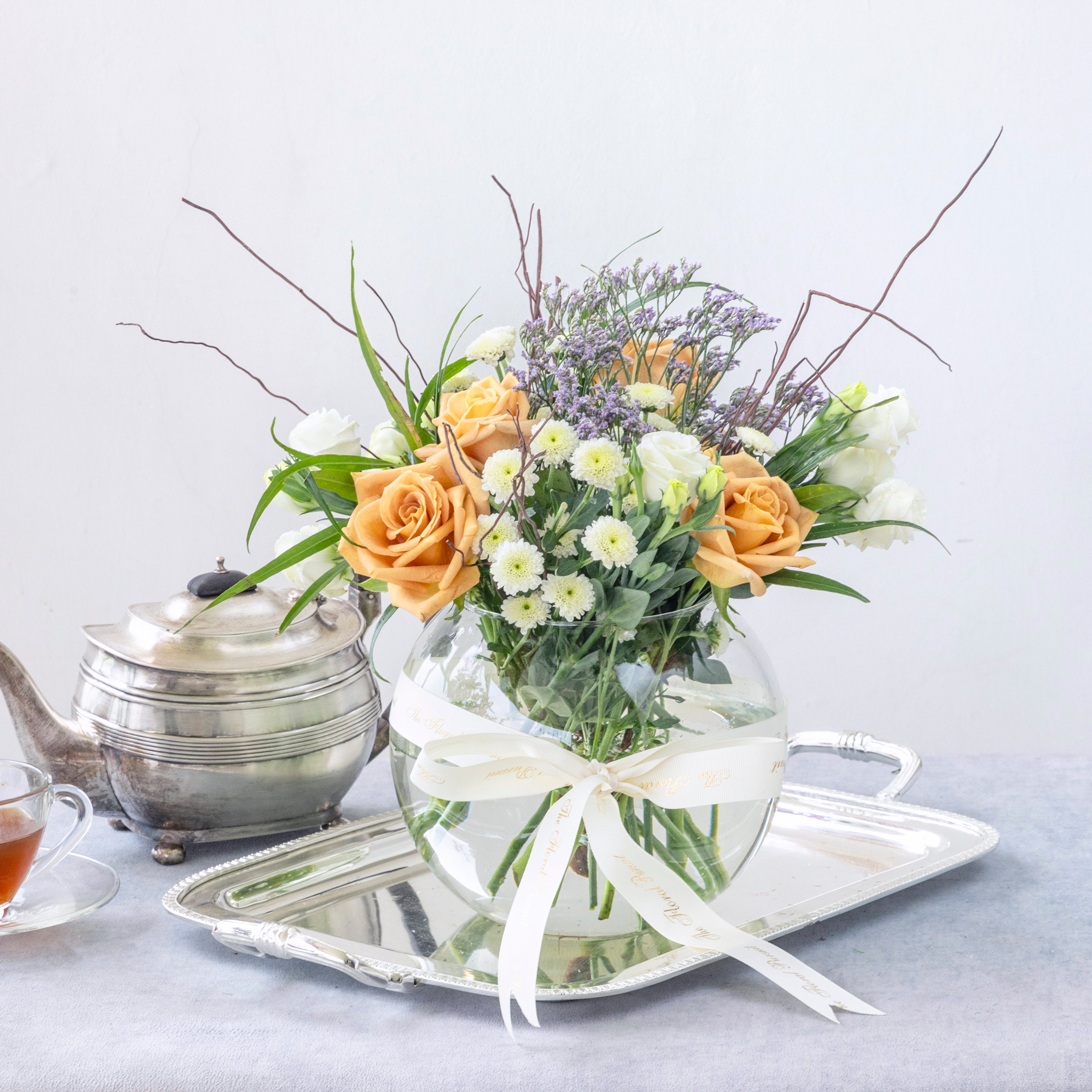 All Round Arrangement : An all round arrangement is ideal to be placed on a round or centre table. It has flowers on all four sides.